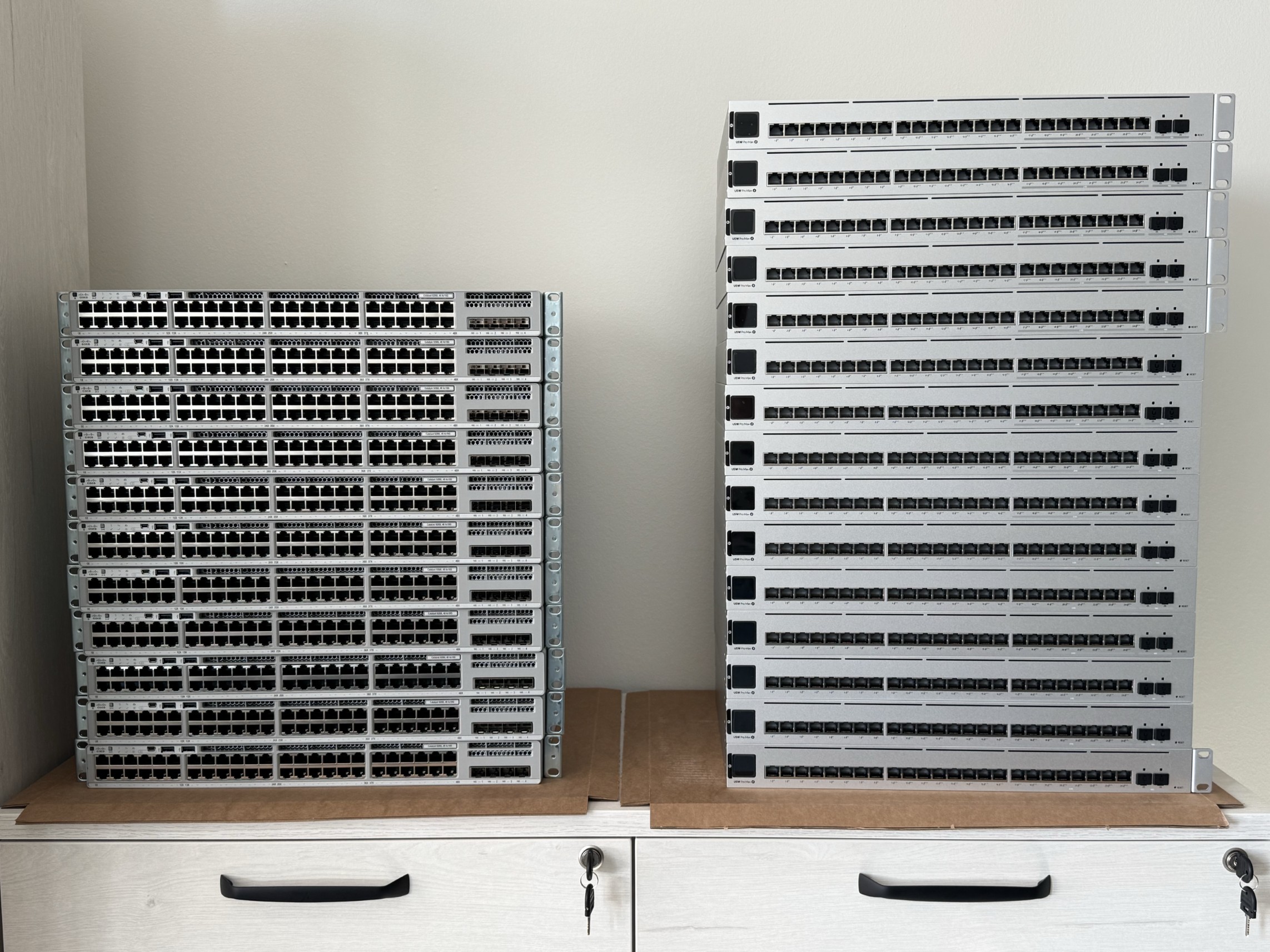 w dniu 13 listopada przyjechała dostawa nowych przełączników sieciowych zakupionych przez Centrum Sieci i Wsparcia Technicznego UO. Nowe urządzenia zastąpią stare i wyeksploatowane urządzenia, które lata swej świetności mają już za sobą. Modernizacja obejmuje swym zasięgiem 9 budynków dydaktycznych UO. Co to zmienia dla użytkowników „?”, Otóż w związku z zakupem nowych urządzeń zyskujemy więcej portów o przepływności 10Gbps oraz 1 Gbps tzn. będzie szybciej!